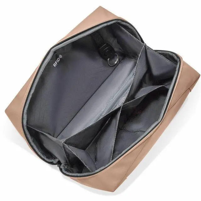 Introducing the Toiletry Bag from the Onyx Collection. Designed for the organized traveler, and perfect for neatly carrying your toiletries, personal care items, and travel must-haves. Its wide opening allows for full visibility and easy access. Crafted with premium Water-resistant PU material, this bag ensures durability and a sleek, modern look and is versatile enough to double as both a toiletry bag or a carrying case for your tech accessories. It features an RFID lining to protect your sensitive information from digital theft, back zip pocket for additional storage, and a carry handle for easy handling.