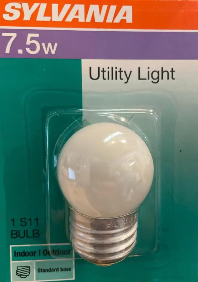 (8 bulbs) Sylvania 7.5 watt Incandescent Utility Light, S11, Medium Base, White