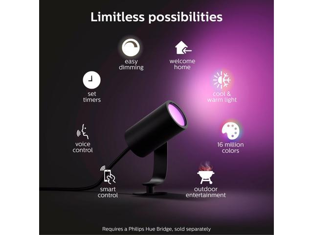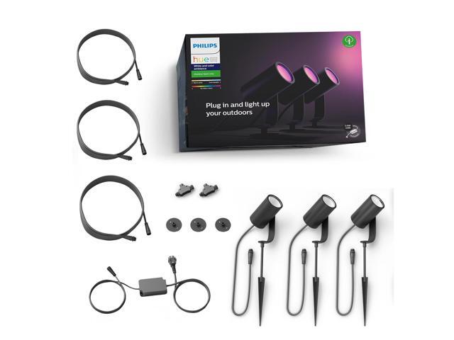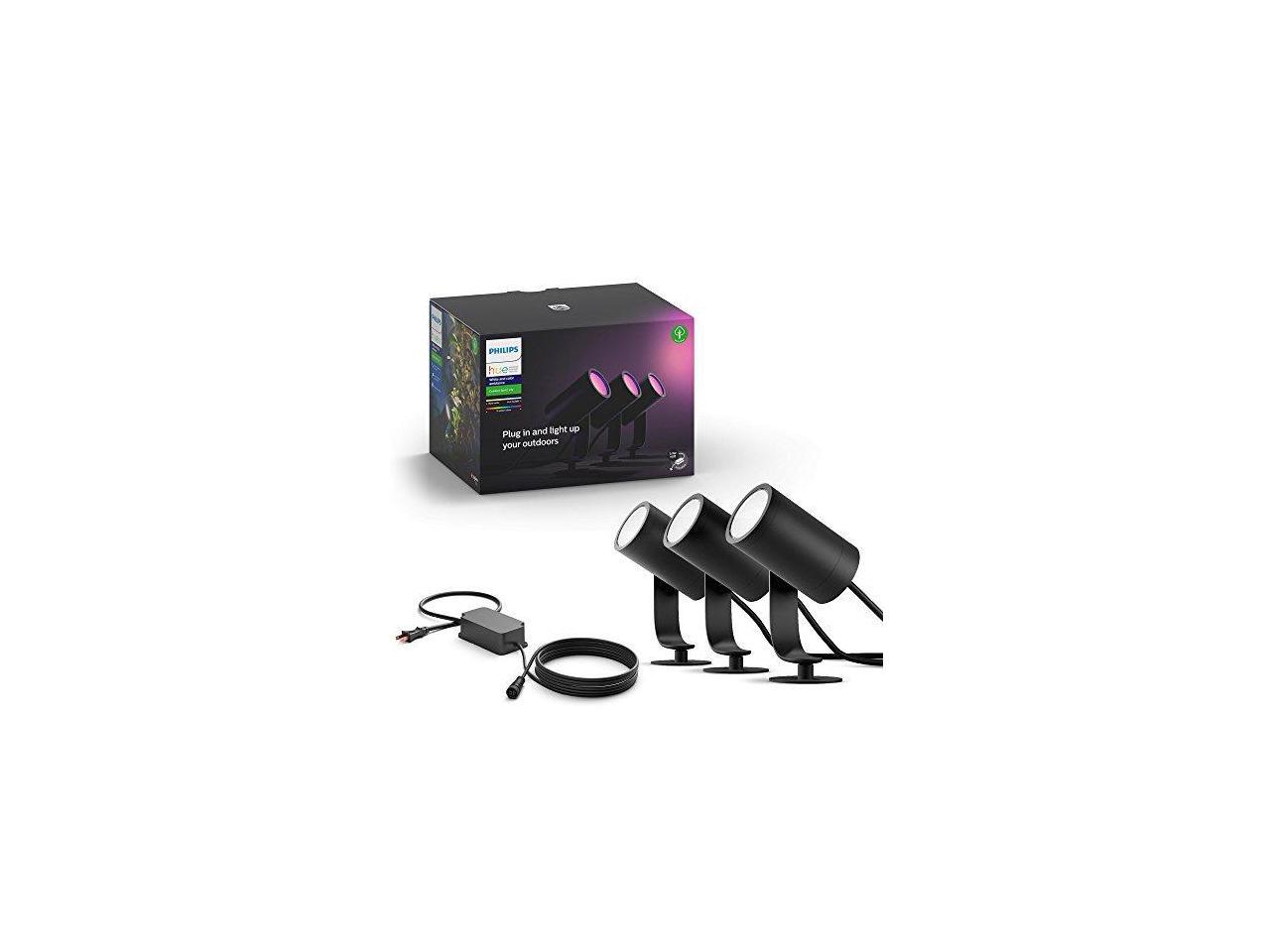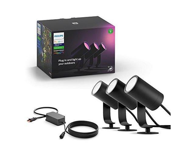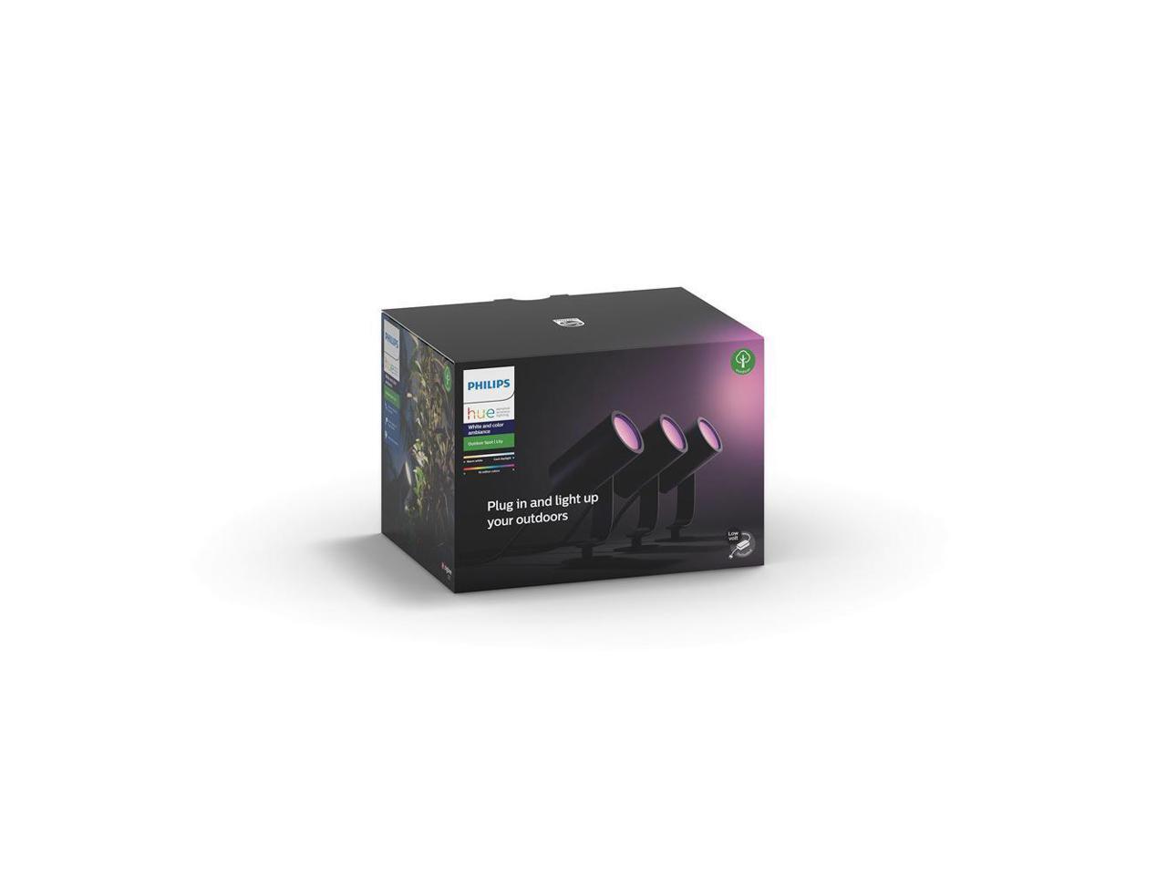 Hue White and Color Ambiance Lily Black Outdoor Integrated LED Landscape Smart Wireless Lights (3-Pack)