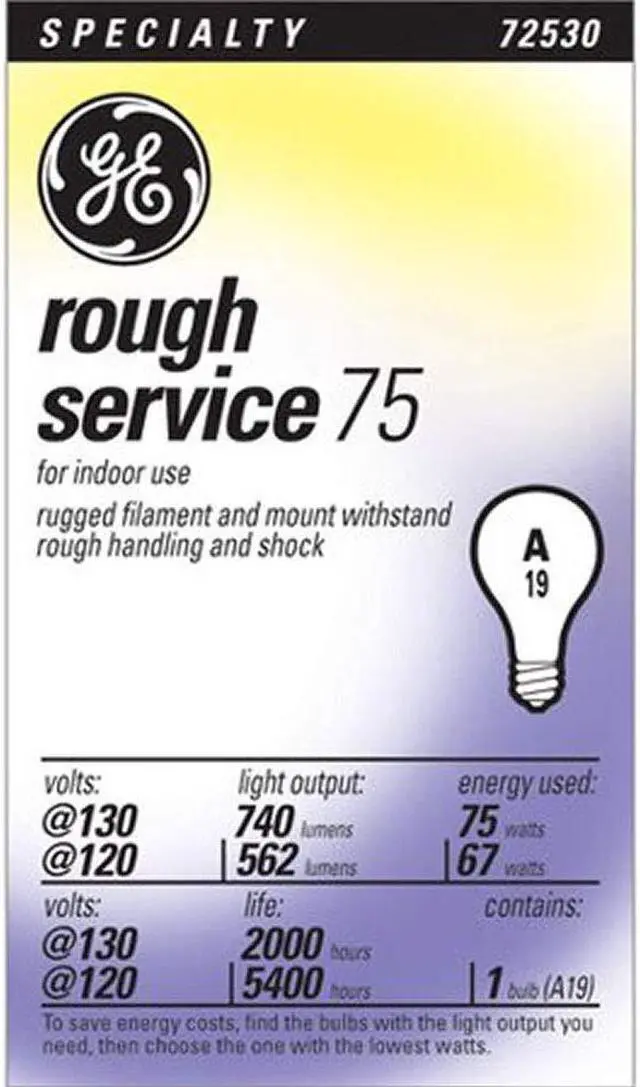GE 72530 - 75A/RS/130 A19 Light Bulb