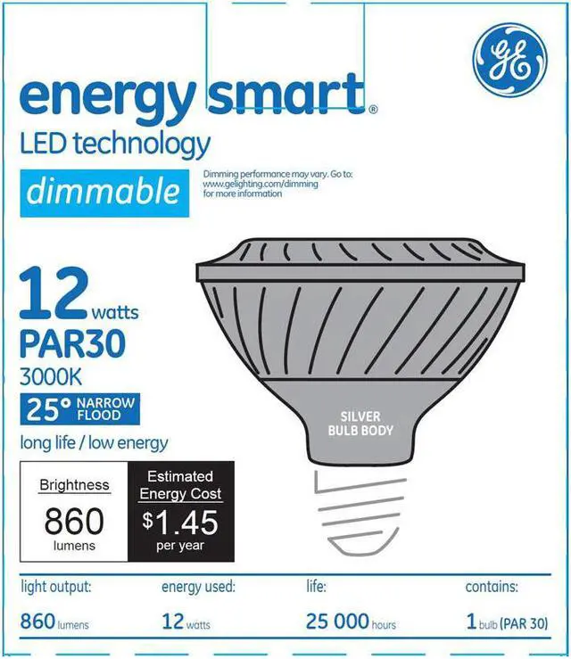GE 67923 - 12 watt - 120 volt - PAR30 - Medium Screw (E26) Base - 3,000K - 900 Series - Energy Smart - Dimmable - Reflector Flood | LED Light Bulb (GE LED12DP30R930/25 67923)