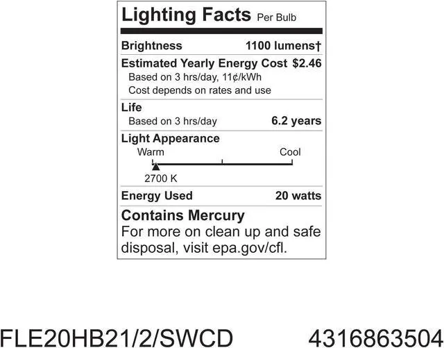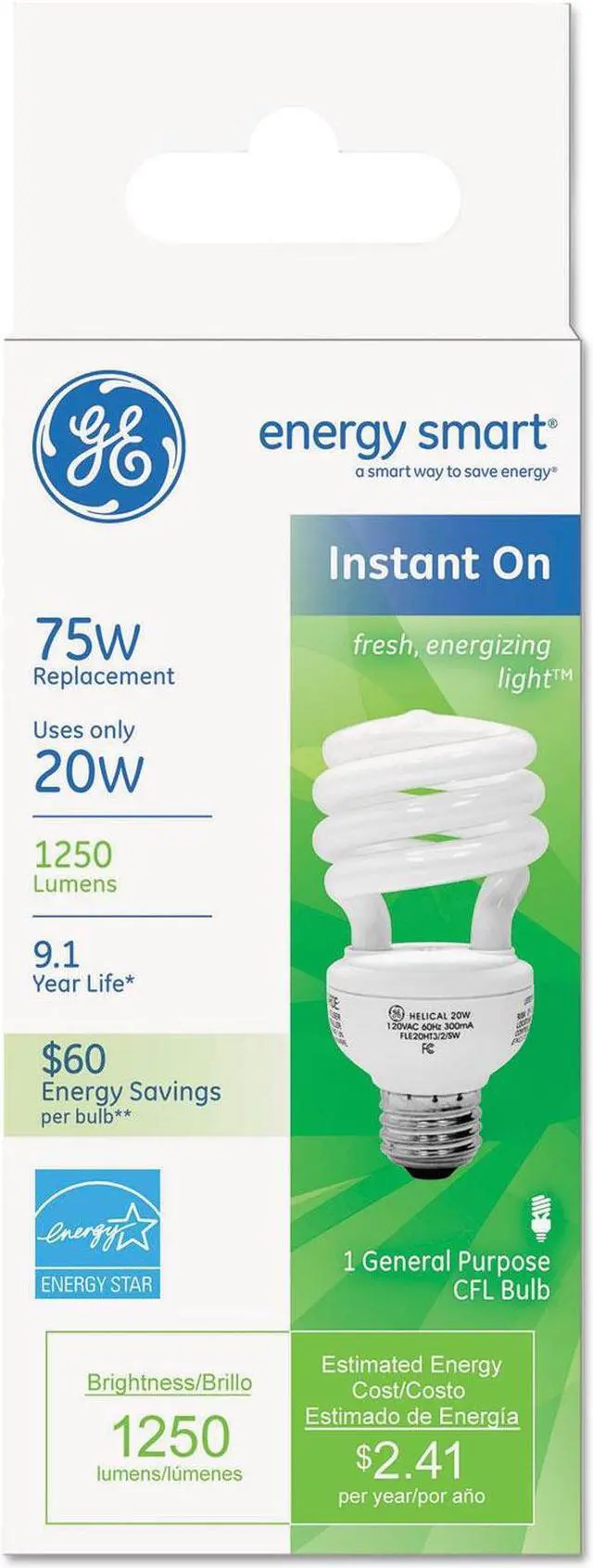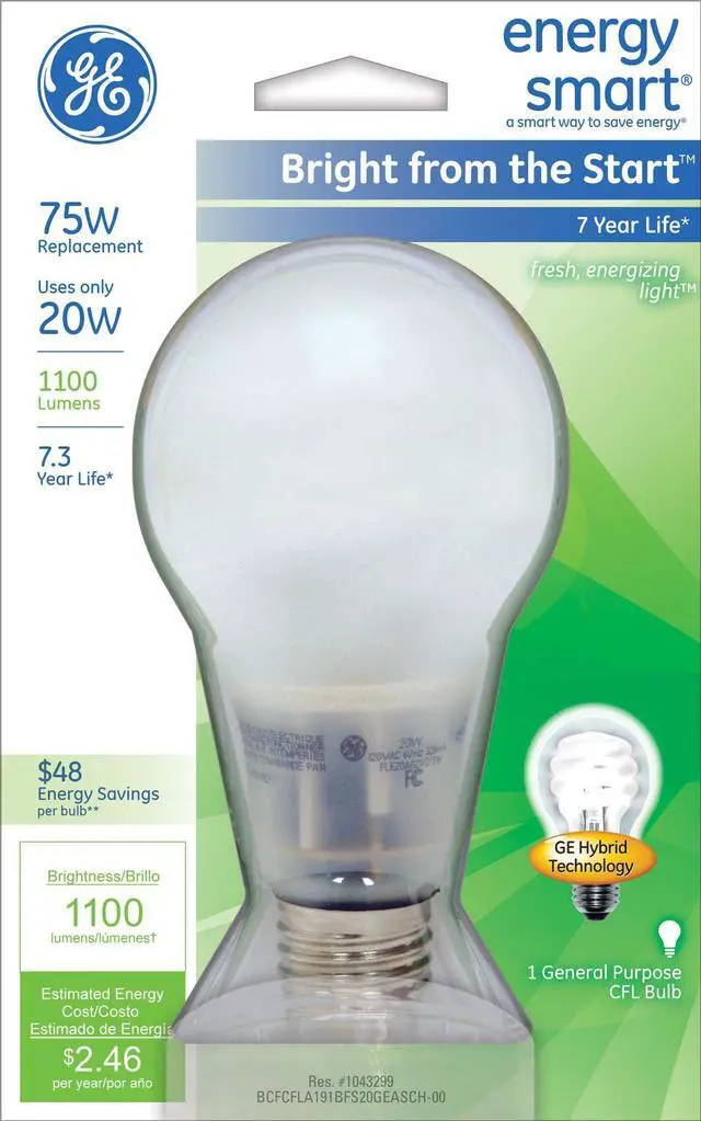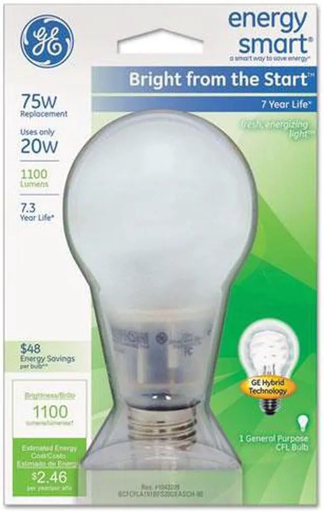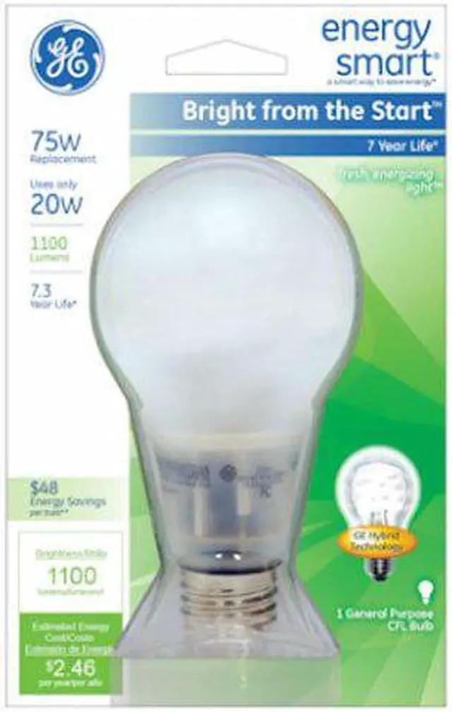 GE Lighting 63504 Energy Smart Bright from the Start CFL 20-Watt (75-watt replacement) 1100-Lumen A21 Light Bulb with Medium Base, 1-Pack