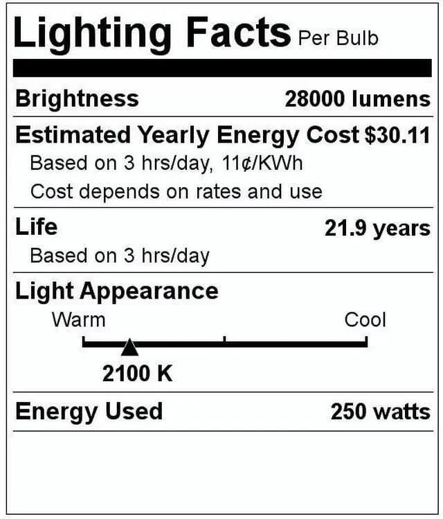 • 250 Watts, 28000 lumens