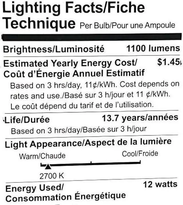 LED Bulb, A21 Bulb Shape, Medium Screw (E26) Bulb Base Type, LED, 2, 700 K, 1100 lm, Wattage Equivalency 75W INC/18 to 20W CFL, Watts 12 W, 120V AC, Bulb Beam Angle 360 Degrees, Dimmable Yes, Bulb Designation LED/12D/A21/827K, Bulb Primary Application General Purpose, Bulb Type Standard, 2 5/8 in Bulb Dia., 5 1/4 in Overall Length, Rated Life 15, 000 hr, Indoor/Outdoor Usage Indoor Only, Shatter-Resistant No This item is banned in the following states: CA