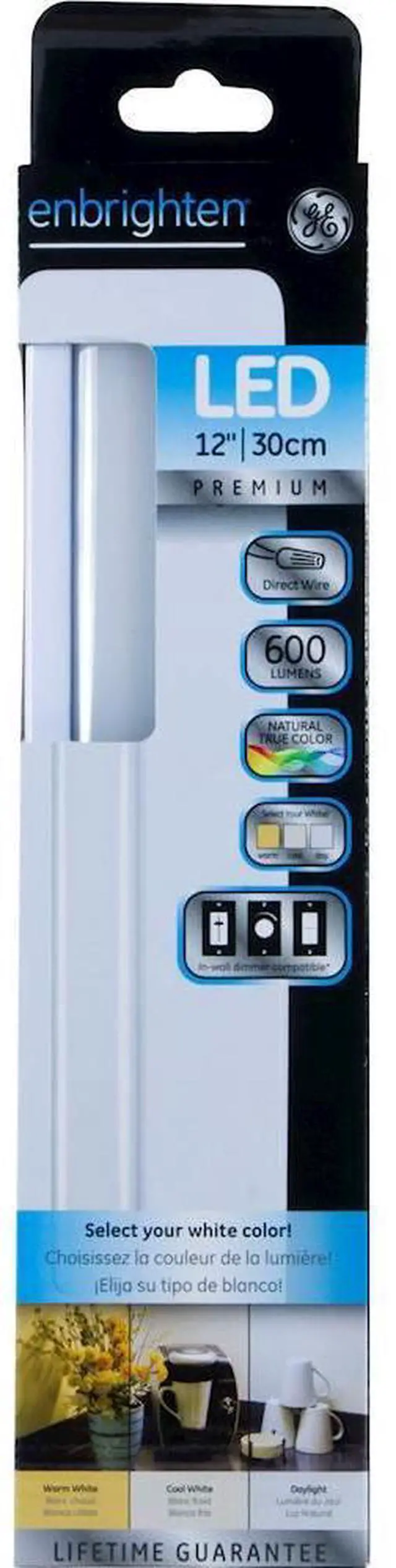 Accentuate dim interiors with this 12-inch Enbrighten LED direct-wire light. It provides warm white, cool white and daylight options to create your preferred ambience, and it’s compatible with in-wall dimmers for additional adjustability. The durable steel housing of this 601-lumen Enbrighten LED direct-wire light provides sturdy installation in your space.