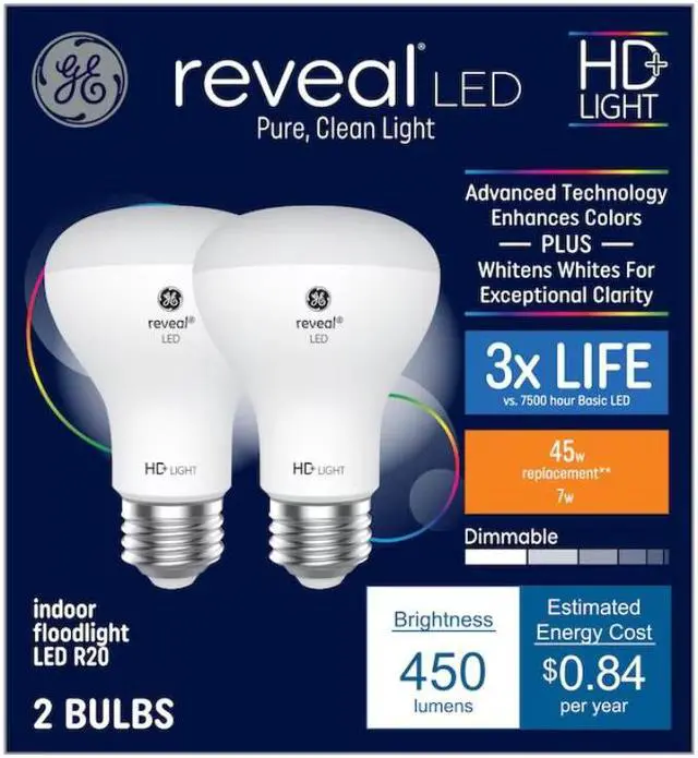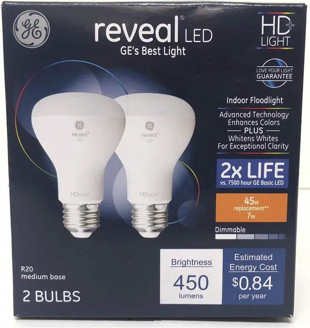 GE High Definition bulbs are an improved, energy-saving LED that enhance the appearance of colors. Experience the difference with bolder colors and enhanced contrast vs. standard GE LED bulbs. Reveal is GE's best light, filtering dull yellow light to give you the incredible color contrast plus whiter whites for exceptional clarity. Reveal illuminates your home with clean, beautiful light. Use reveal pure, clean light in kitchens, bathrooms as well as craft and hobby spaces where clarity matters most