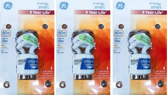 GE 76135 Energy Smart Spiral CFL, 3 bulbs, 10 Watt, 550 lumens(40 watt replacement,T3 spiral, Gu24 plug in Base, cozy soft white, 3 bulbs