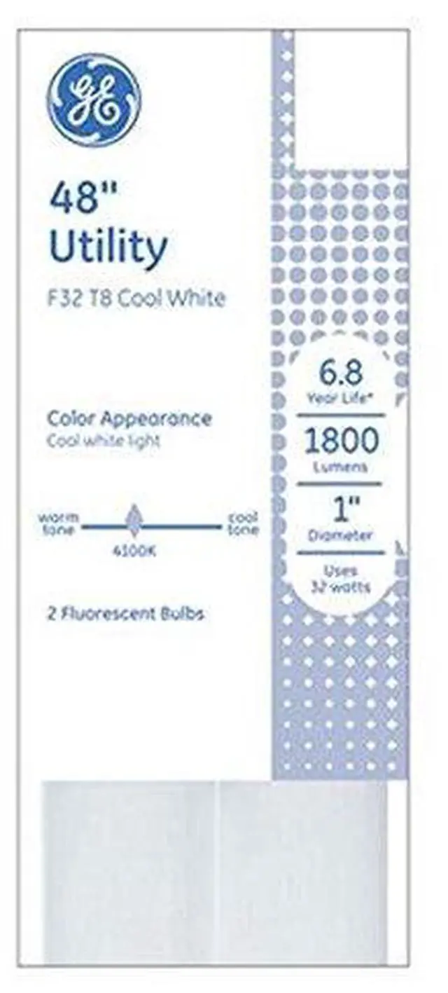 (case of 8 tubes) GE Fluorescent Tube, 48 inch T8, 1800 lumens, 32 watt, 4100K Cool White, Med Bi Pin G13 base