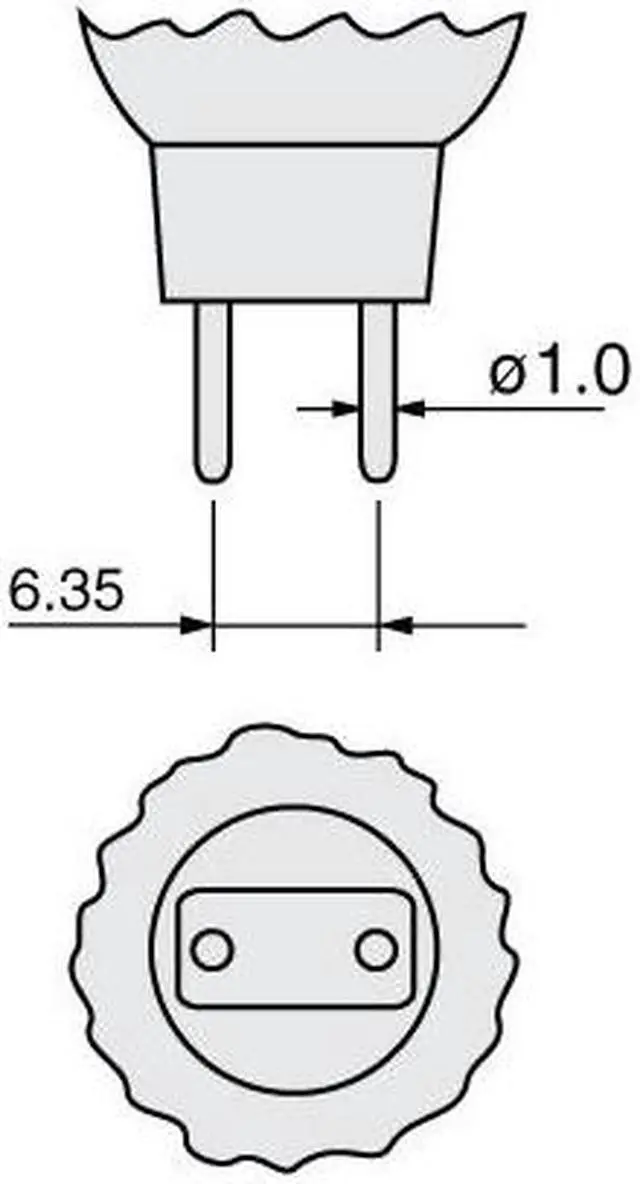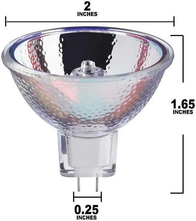 This Ushio MR16 100 watts 12 volt bulb has a GZ 6.35 2-Pin base. It has a color temperature of 3100K, a diameter of 1.996 inches, a maximum overall length of 1.653 inches and a rated life of 1000 hours. This lamp also has a C-8 filament.