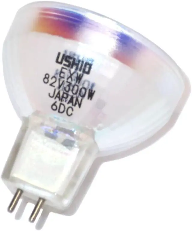 This halogen lamp can produce a higher color temperature and lumen than a standard gas lamp of comparable power and has a rated life of 15 hours.