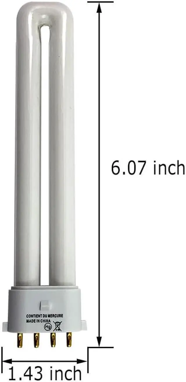 This Ushio 9 watt bulb has a 2G7 base. This lamp has a color temperature of 4100K and a luminous flux 600LM. It has a rated life of 10000 hours and an overall length of 5.7 inches.