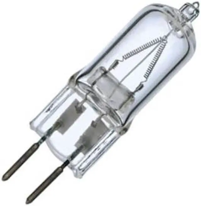 Satco 100 Watt 120 Volt bulb has a GY 6.35 2-Pin base. This clear finished bulb has a rated life of 2000 hours and a CC-2V filament. This T4 shaped bulb has an overall length of 2.375 inches and a luminous flux of 1900LM.