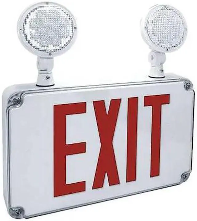 Fulham 040460 - 4 watt - 120/277 volt - White Housing - Red Letters - FireHorse - Battery Backup - 2 Heads - Wet Location - Double faced - Slim | LED Exit and Emergency Light Combo (Fulham FHEC34R 040460)