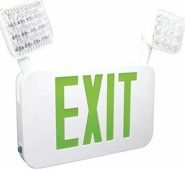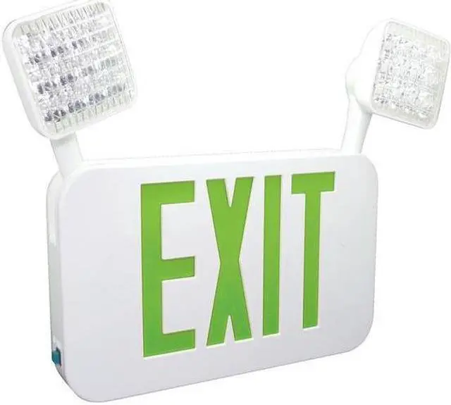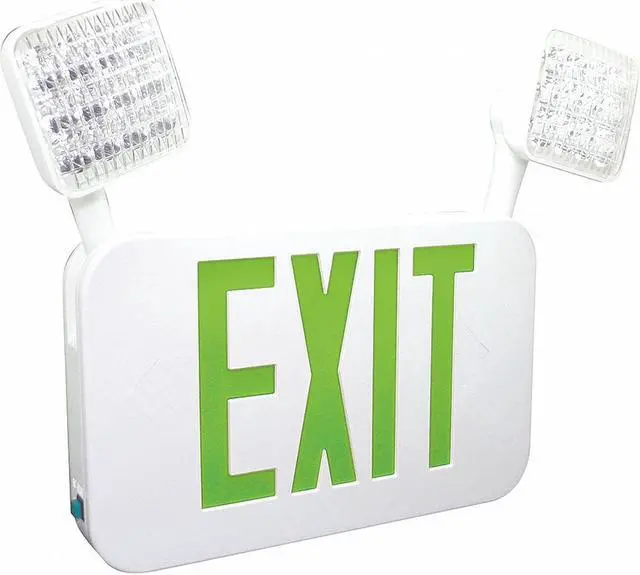 Fulham 040798 - 3.4 watt - 120/277 volt - White Housing - Green Letters - FireHorse - Battery Backup - 2 Heads - Double faced - Slim | LED Exit and Emergency Light Combo (Fulham FHEC35G 040798)