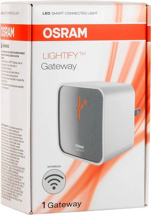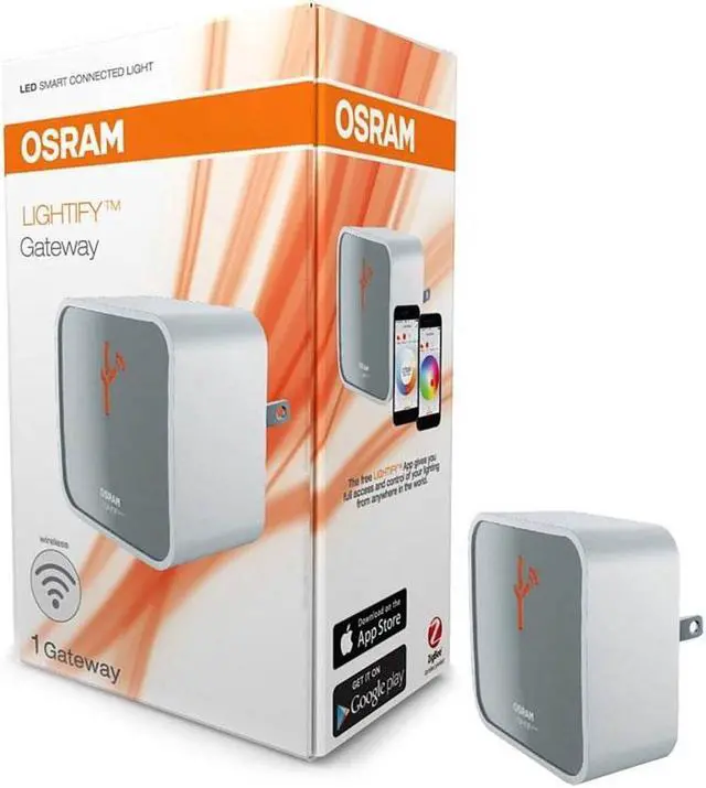 Wireless gateways smart lighting products Wire free, unobtrusive Gateway which can be placed anywhere inside the home. Provides access to LIGHTIFY light sources and/or device via local 2.4GH Wi-Fi network or remote cloud server. Can control up to 50 ZigBee compatible products. Control light sourc es and/or devices with simple to use scenes and grouping. RoHS compliant, cULus Listed. Wire free, unobtrusive Gateway which can be placed anywhere inside the home. Provides access to LIGHTIFY light sources and/or device via local 2.4GH Wi-Fi network or remote cloud server. Can control up to 50 ZigBee compatible products.