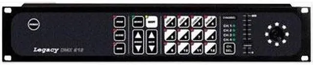 TECHNICAL FEATURES: 6 DMX channels for each projector (72 total channels) 612 version. 12 programmable sequences with 12 scenes each one (144 total DMX 512/1990 standard output (5-pin female XLR type connector). Mirror's movement (ch. 5 & 6) controlled by an auto-return Joystickwith proportional movement, for quick and fine positioning. PROG function executes one or more programs. SCENE function executes one of the 12 scenes of a program. SCENE + MAN function modifies and stores a scene. PROG + MAN function controls manually one or more projectors,while the others run a program. Digital adjustment of SPEED and RATE to reach the best accuracy. Functions: LENGTH, COPY, REPEAT MUSIC function with adjustable mirror speed. Built in microphone and 0 dB audio input with automatic level control. Non volatile EEPROM 128 Kbit memory with 40 years data retention. Very simple working and user friendly programming. Supplied with pre-programmed scenes and ready for use. Dimensions: 19" x 3.5" x 1.6"Weight: 7 lbs.
