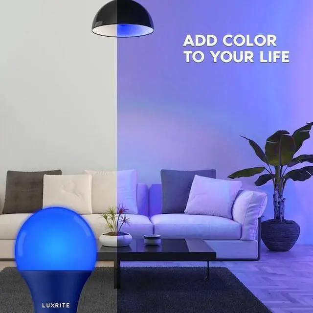 Luxrite A19 LED Colored Light Bulbs Express yourself with these colored LED bulbs that will brighten your space with vivid color that you will enjoy Available in a variety of colors, so you can mix and match other colored bulbs together for a unique twist to your space You can use these for general home lighting, holidays, events, special occasions, or make parties a blast with lights that will really bring out your spirit Each light bulb is equivalent to a 60 watt incandescent but only uses 8 watts of power, which means not only will you get to enjoy a colorful space but you will also save energy while doing it With it's damp location rating, you'll be able to use these in almost any location without issue Along with it's energy savings, these will also last 8 times longer than traditional lights with it's 10, 000 hour lifetime Built to last, you can use these lights year after year and not have to think about getting replacements Zero flickering light, zero delay, and zero worry with Luxrite color light bulbs that are UL listed for your safety