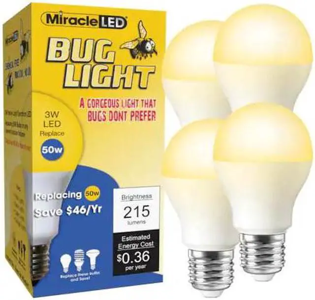 Bug Light Bulb, 3W, Lw Prf LED Amber, PK4, Wattage Equivalency 3800W HAL, Package Quantity 4