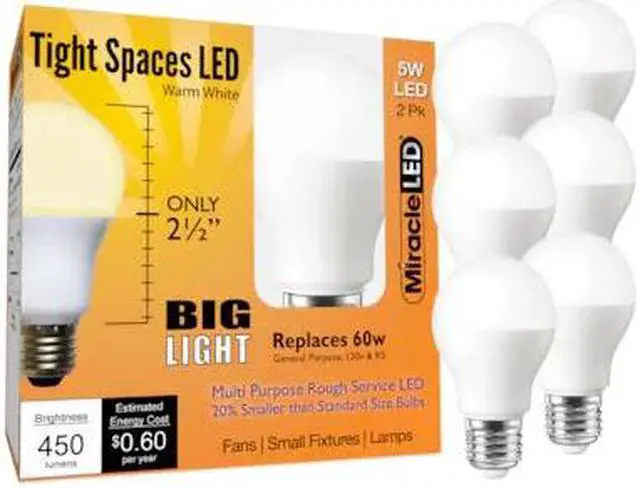 MIRACLE LED 602191 Tight Spaces LED Bulb for Small Areas, Warm White Replace