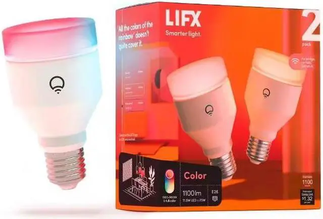 The LIFX Color A19 is the brightest LIFX smart product, packing a serious 1100-lumen punch. Use vibrant blues to stay alert while you work from your home office. Switch to a gentle pink to enhance your feelings of calm during me-time. Then create a scene with both for a wild party vibe. And that's just with two colors - think of what you can do with billions. Get rid of the jolting alarm and instead rise naturally with lighting. With schedules that slowly turn your lights on and up to the same brightness as the sunrise.