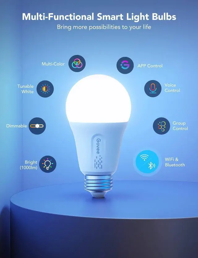 Easy Smart Control: With a more stable connection on Wi-Fi and Bluetooth, you can control the smart bulbs remotely using Govee Home App or voice control your smart bulbs via Alexa or Google Assistant.