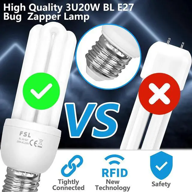 EFFECTIVE: 3U 20W bulb attracts mosquitoes, gnats, moths, and other flying insects without chemicals.
