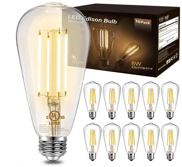 ST58/ST19 edison bulb can be smoothly and widely dimmable, no flicker, brightness adjustable from 10% to 100%, compatible with more than 90% of modern LED dimmers on the market.