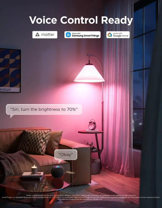 Seamless Smart Control: Compatible with Alexa, Google Assistant, Matter, and SmartThings for voice and app control. Automate your lighting with schedules and sunrise/sunset routines for a hands-free smart home experience.(Note: Doesn't support 5G.)