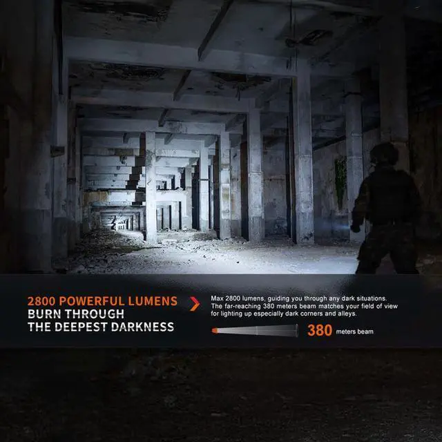 The Fenix PD36R Pro is a high-performance tactical flashlight built for professionals who demand maximum brightness, durability, and reliability. Delivering an impressive 2800 lumens with a beam distance of up to 380 meters, it ensures exceptional visibility in any environment. Designed with dual rear switches, it allows instant access to turbo or strobe modes for tactical use.