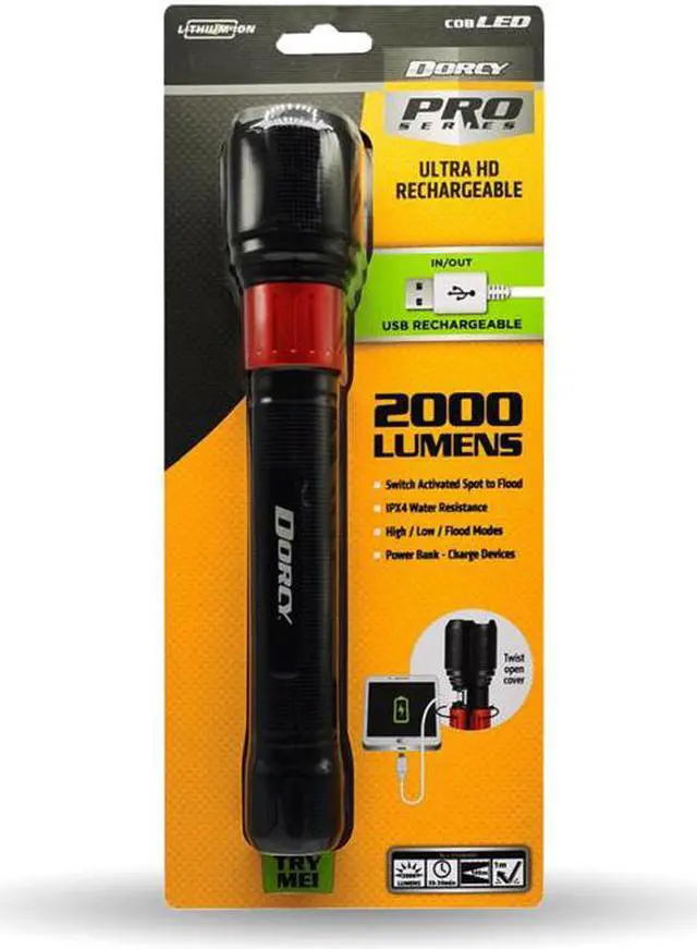 dorcy 41-4328 2,000-lumen usb rechargeable flashlight with powerbank, black