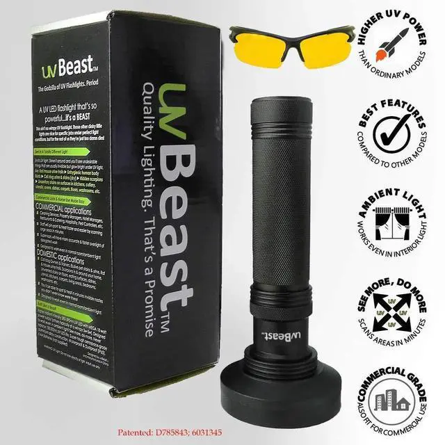 Black Light UV Flashlight High Power 100 LED with 30-feet Flood Effect Professional Grade 385nm-395nm Best for Commercial/Domestic Use Works Even in Ambient Light - USA Stock UK Design
