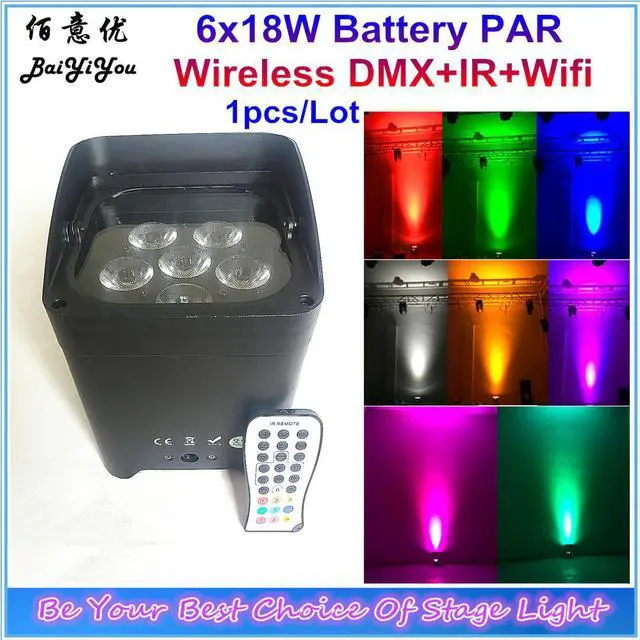 1pc/Lot Up Wash Light 6pcs*18w RGBWA+UV 6 IN 1 Wifi Led Battery Wireless DMX Freedom Par Light With IR Remote Phone App For DJ Disco Party BY-BP618