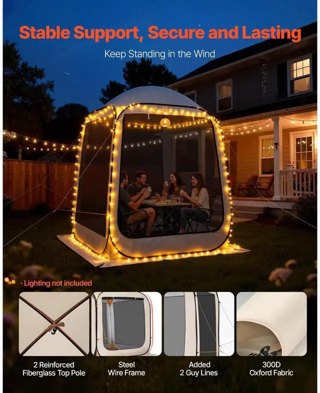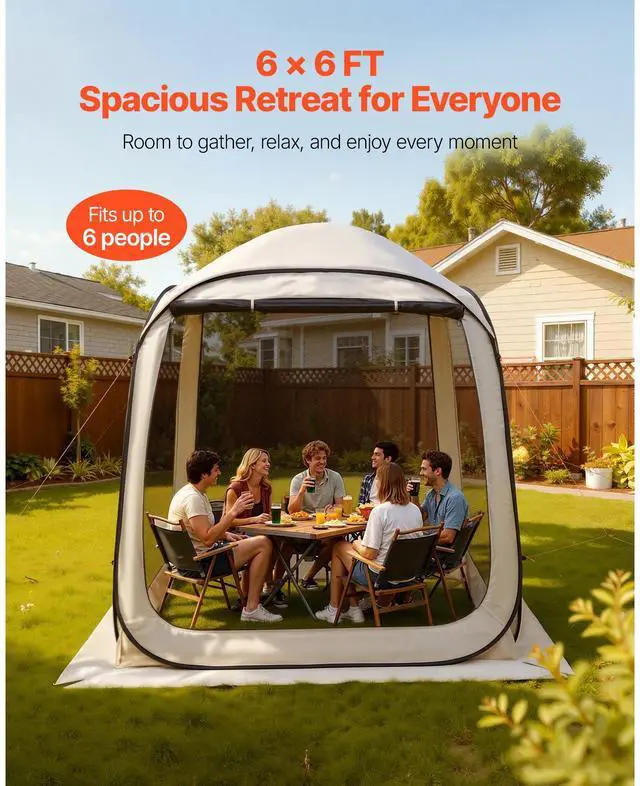 Screen House Tent, 6 x 6 ft, 4-6 Person Pop Up Screen Tent, Portable Screened in Canopy with Carry Bag, Netting Sides, Ground Stakes, for Garden, Patio, Backyard, and Outdoor Activities, Beige
