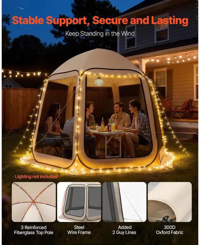 Screen House Tent, 10 x 9.2 ft, 4-8 Person Pop Up Screen Tent, Portable Screened in Canopy with Carry Bag, Netting Sides, Ground Stakes, for Garden, Patio, Backyard, Outdoor Activities, Beige