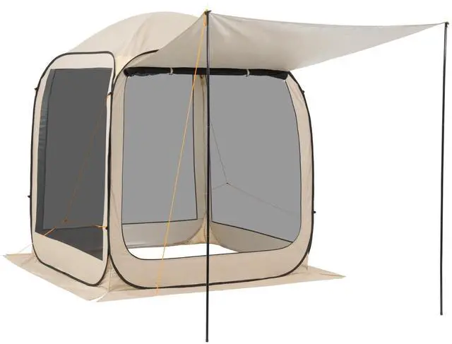 Screen House Tent, 6 x 6 ft, 4-6 Person Pop Up Screen Tent with Extended Awning, Portable Screened in Canopy with Carry Bag, Netting Sides, for Patio, Backyard, and Outdoor Activities, Beige