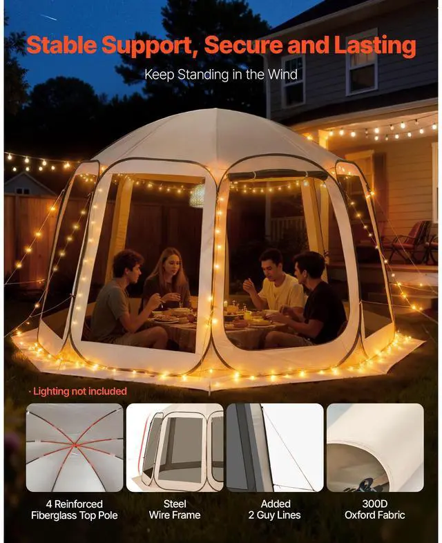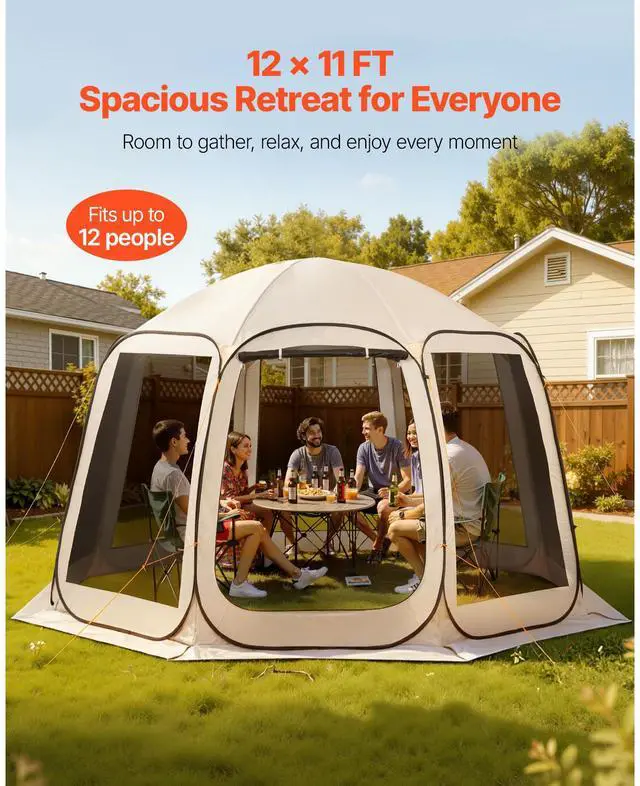 Screen House Tent, 12 x 11 ft, 10-12 Person Pop Up Screen Tent, Portable Screened in Canopy with Carry Bag, Netting Sides, Ground Stakes, for Garden, Patio, Backyard, Outdoor Activities, Beige