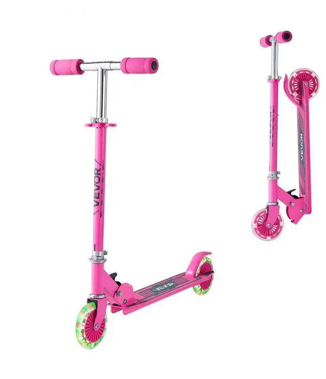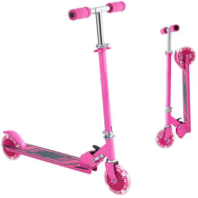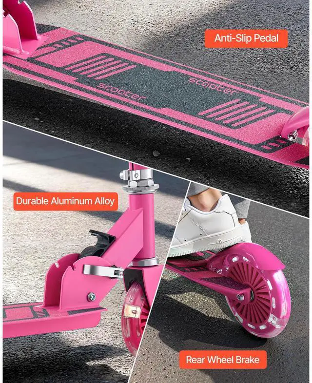 Kick Scooter for Kids Ages 3+, 2-Wheel Toddler Scooter with Light-Up Wheels, Adjustable Height Handlebar, Wide Anti-Slip Deck, Foldable Lightweight Frame for Boys & Girls up to 110 lbs, Pink