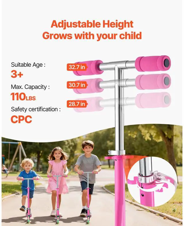 • Kids Scooter for Ages 3+: This 2-wheel kick scooter for kids features an aluminum alloy framelightweight, durable, and capable of supporting up to 110 lbs. A fun and active companion that encourages outdoor play, confidence, and joy