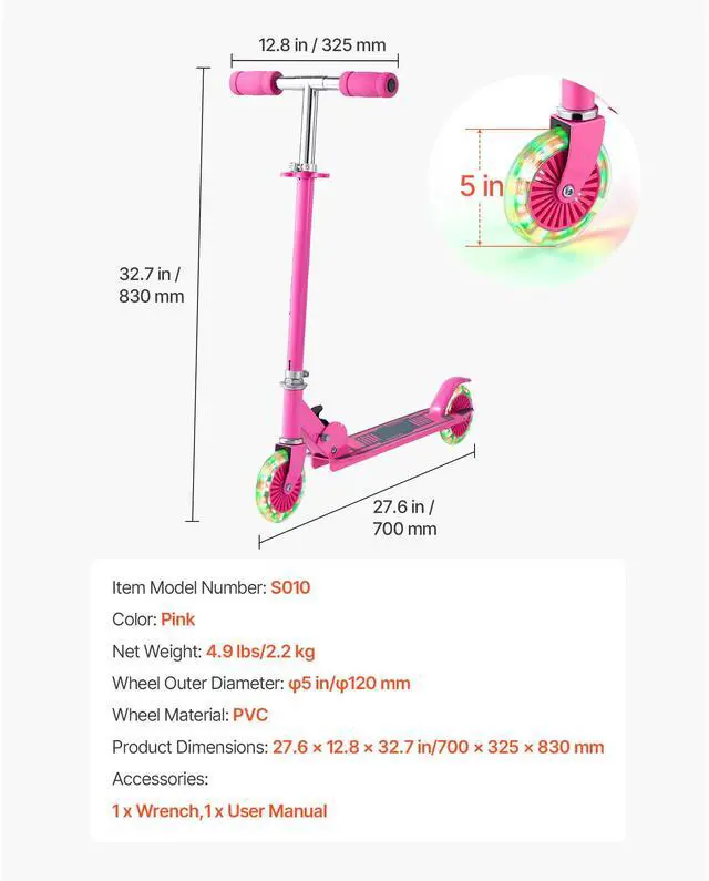 • 5-Inch Light-Up Wheels: Kick scooter wheels light up automatically when rollingno batteries needed! Add fun and visibility for night rides. Large 5-inch wheels glide smoothly on sidewalks, asphalt, wood floors, and tiles with fewer bumps and less noise