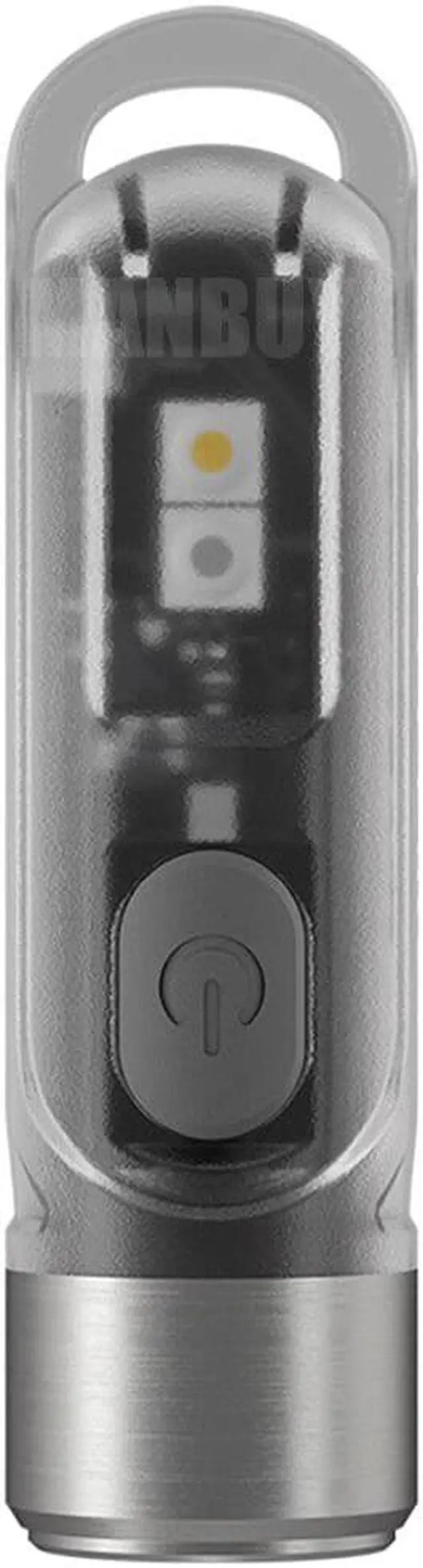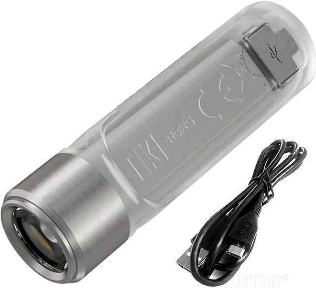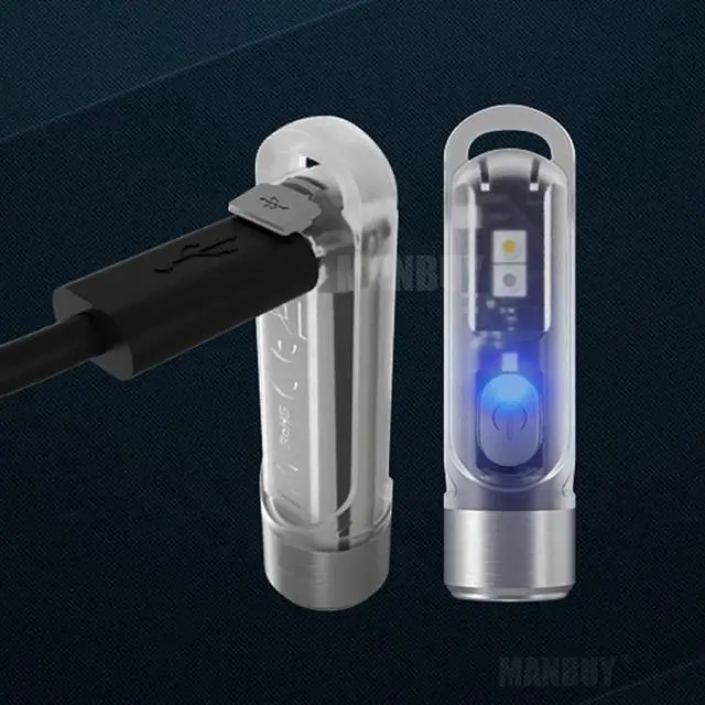 The TIKI is the latest addition to 's line of keychain lights. The TIKI has a transparent body constructed of durable PC materials packed into a small design that is compact but still allows for a comfortable and steady grip. Thanks to an OSRAM P8 LED serving as the main light, the TIKI can emit 300 lumens with a uniform and soft beam with the help of a total reflective optic lens. In addition to the main LED, the TIKI has two additional sidelights, one High CRI White LED great for providing true color rendering for reading and one UV LED great for charging up glow-in-the-dark objects or identifying counterfeits. These features are easily accessible through the single button interface which can also provide direct access to the highest output. Once your keychain light is out of juice, quickly recharge via the micro-USB port and be on your way again.TXT design by MANBUY.
