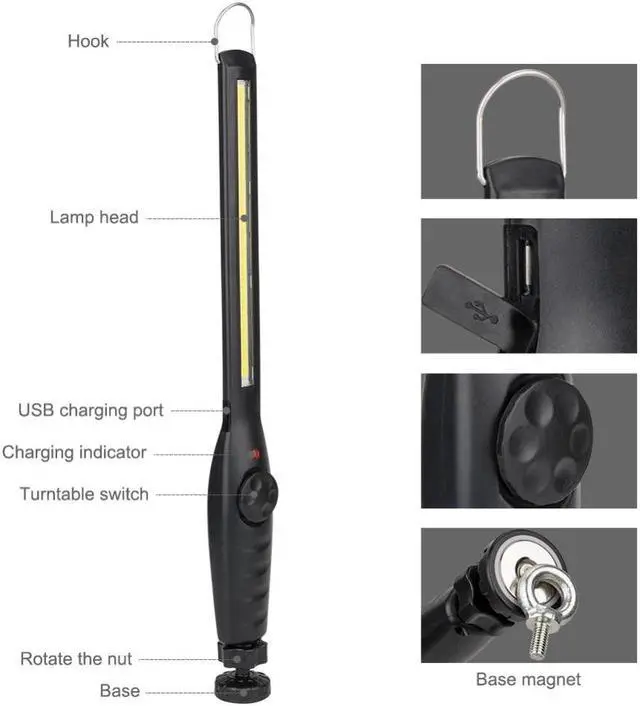 4. The bottom magnet base can rotate 360° to provide the optimum lightling angle.