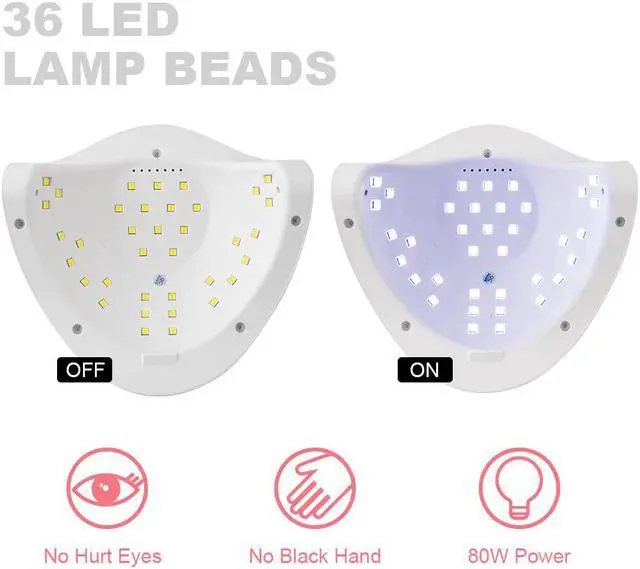2:?SAVE 80% TIME FOR CURING NAILS?-Our professional uv light for gel nails can shorten your curing time by 80% than other nail lamps. Faster than twice the speed of the other brand gel lamp.Save your time,effort and a amount of money to get great salon nail art experience at anytime and anywhere.