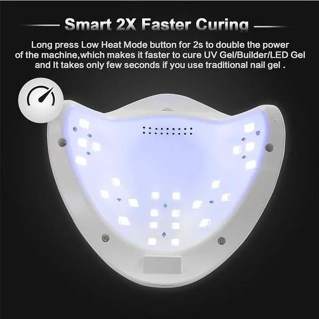 When press"Low heat model" button, the lamp is gradually increasing, so customer will never feel hot hurt even curing harden gels.