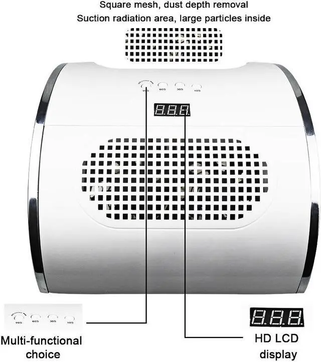 2 powerful fans to collect dust or polish nails generated during the demonstration.