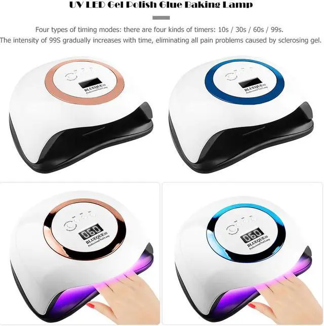 5. Suitable for all Gel nails: double wavelength (365 nm + 405 nm), UV nail lamp can be used almost all nail gel, such as UV treatment gel, expanded gel, gel Polish agent LED nail, curing agent gel, carving glue, gems and so on.