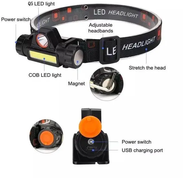 Long and near dual light source design: the main light source XPE strong light wick, with COB high-brightness auxiliary light, the distance and near dual light and one lamp are multi-purpose