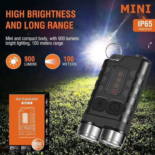 Super bright mini light: The keychain flashlight has a powerful LED, which can provide up to 900 lumens of illumination while maintaining a portable size and simple design;