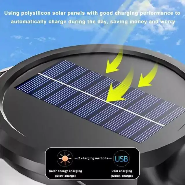 1Two Charging Methods: The powerful flashlight has two charging methods, using polysilicon solar panels to automatically charge during the day, saving money and worry.