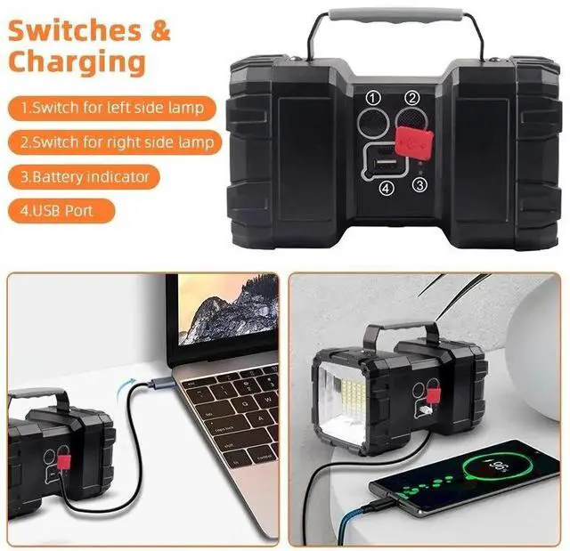 1.100000LM Ultra-Bright: L2 + 35 SMD lamp beads, it offers illumination distances of up to 300-800 meters, perfect for illuminating the entire room or camp.
