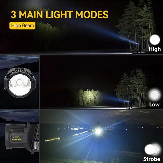 1. Flashlight High Lumen Rechargeable: Illuminate the night with our rechargeable spotlight with up to 1300,000 lumens. This powerful spotlight can shine up to 500 meters away so you never miss a moment. It's your go-to for exploring in the dark or shining a light in an emergency.
